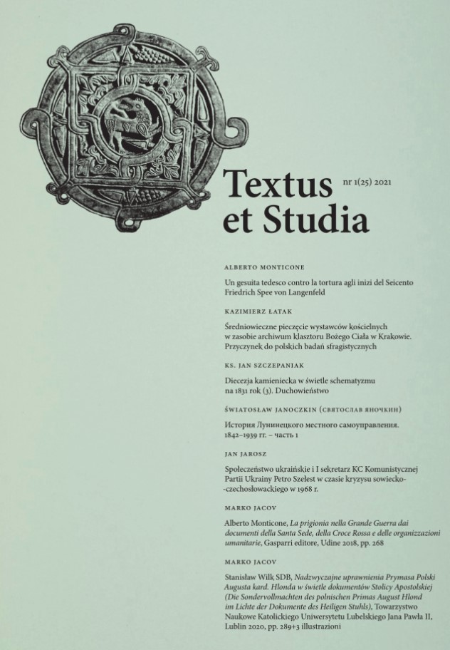 Zawiera recenzję książki: Nadzwyczajne uprawnienia Prymasa Polski Augusta kard. Hlonda w świetle dokumentów Stolicy Apostolskiej = Die Sondervollmachten des polnischen Primas August Hlond im Lichte der Dokumente des Heiligen Stuhls / Stanisław Wilk. - Lublin, 2020.
