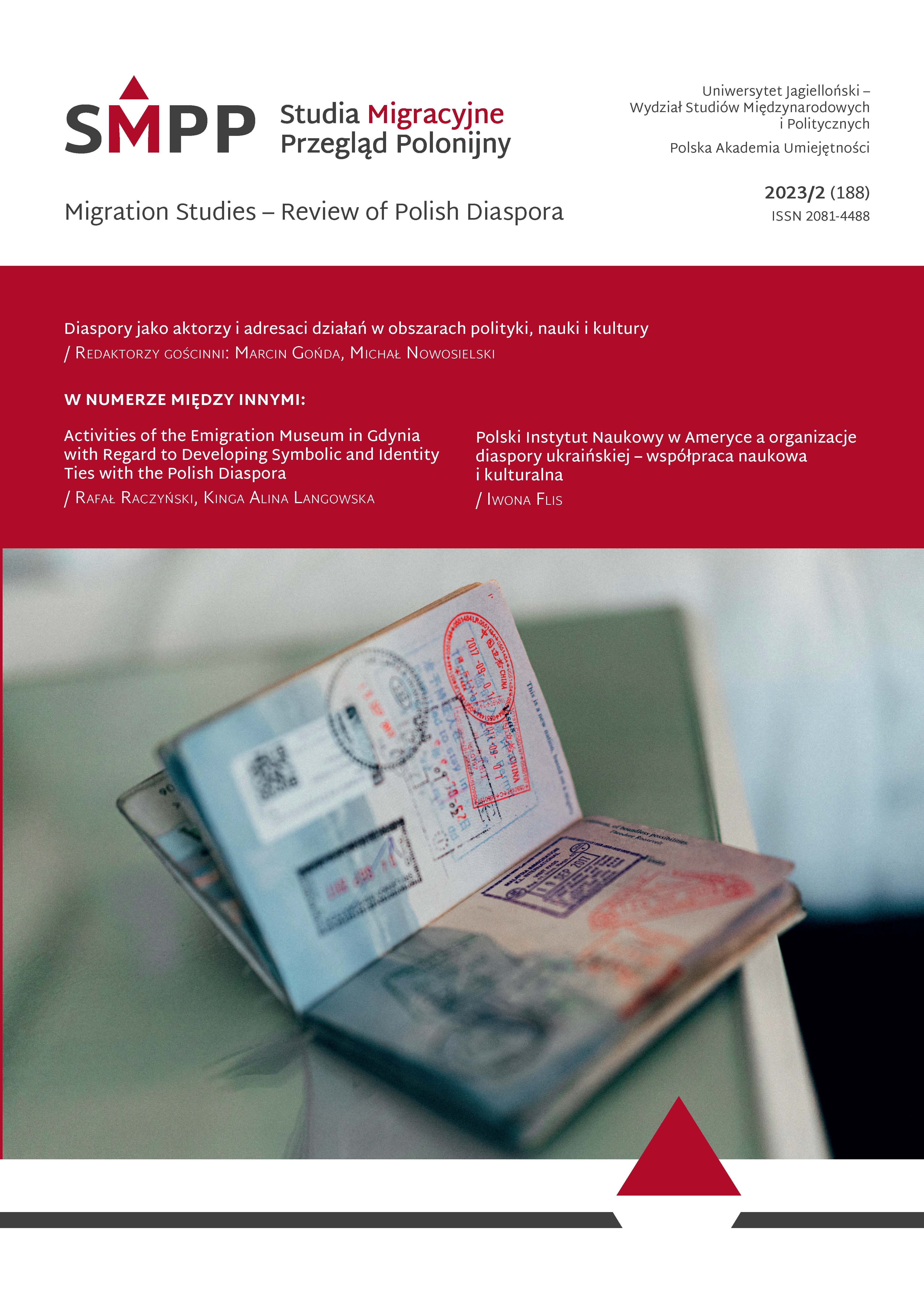 This article aims to outline the activities of the Emigration Museum in Gdynia (Polish abbrev. MEG) in building relations with the Polish diaspora and maintaining Polish identity among Poles and people with Polish ancestry living abroad. Its main thesis is that the MEG, as a comparatively small institu tion, has a relatively large potential for shaping symbolic and identity ties with the Polish diaspora and could potentially be an important actor for activities undertaken in this sphere, implemented as part of a broadly defined policy with regard to and for Poles living abroad. The article consists of an introduction, three main sections and a conclusion. In the first section, we briefly define the diasporic policy in its subject and object dimensions, present selected concepts that typify this pol icy, and point out the role of culture and cultural institutions in building symbolic and identity ties with the diaspora. The second section was devoted to presenting the history, circumstances of the establishment and organizational basis of the Emigration Museum in Gdynia. The museum, al though technically a self-government cultural institution, is the first and only museum in the coun try to show the history of emigration from Poland and Polish lands in a comprehensive way. Section three, on the other hand, focuses on showcasing selected MEG activities in forming symbolic and identity ties with the Polish diaspora.