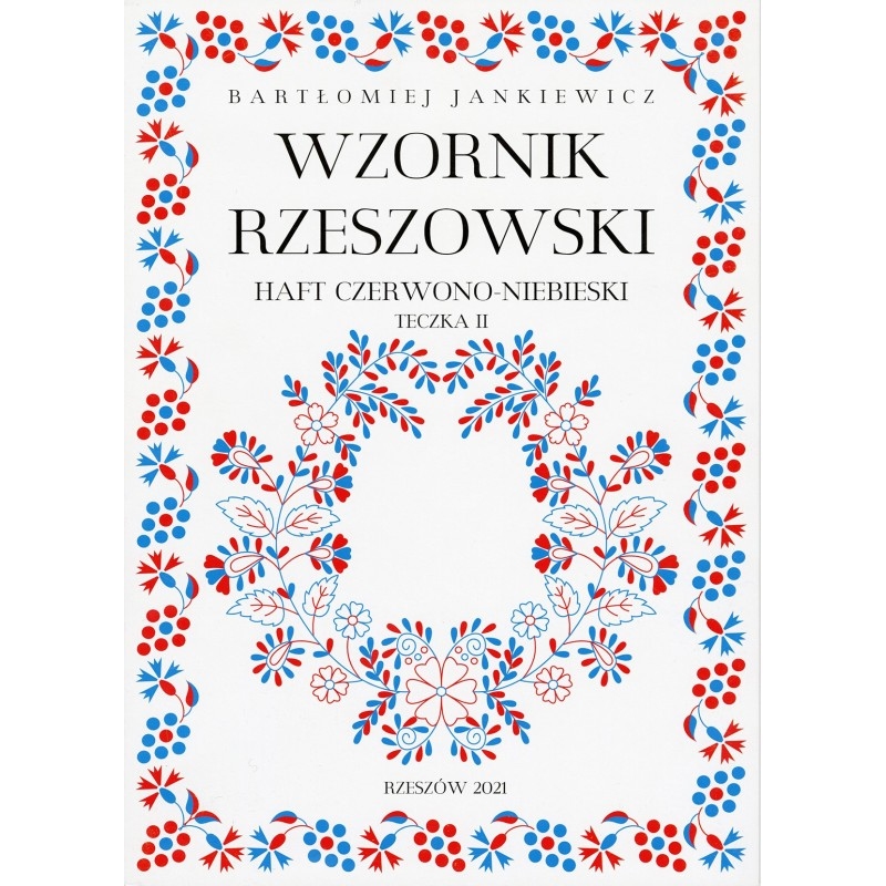 Wzornik rzeszowski : haft czerwono-niebieski. Teczka 2 / Bartłomiej Jankiewicz. - Rzeszów : Muzeum Okręgowe w Rzeszowie, 2021. - 1 teka ([2] karty luzem, [11] kart tablic luzem, [6] kart tablic złożonych luzem) : fotografie, ilustracje ; 31 cm.